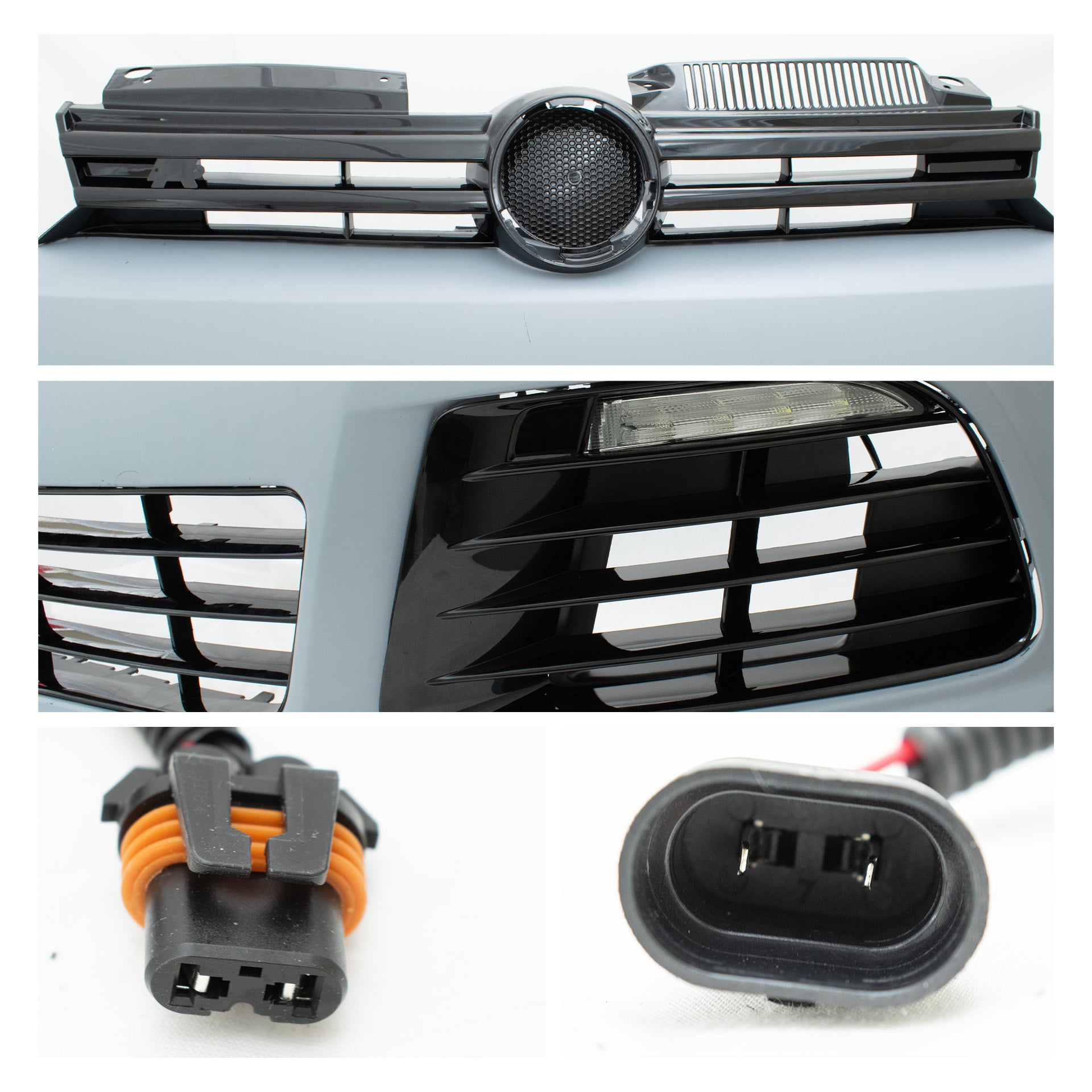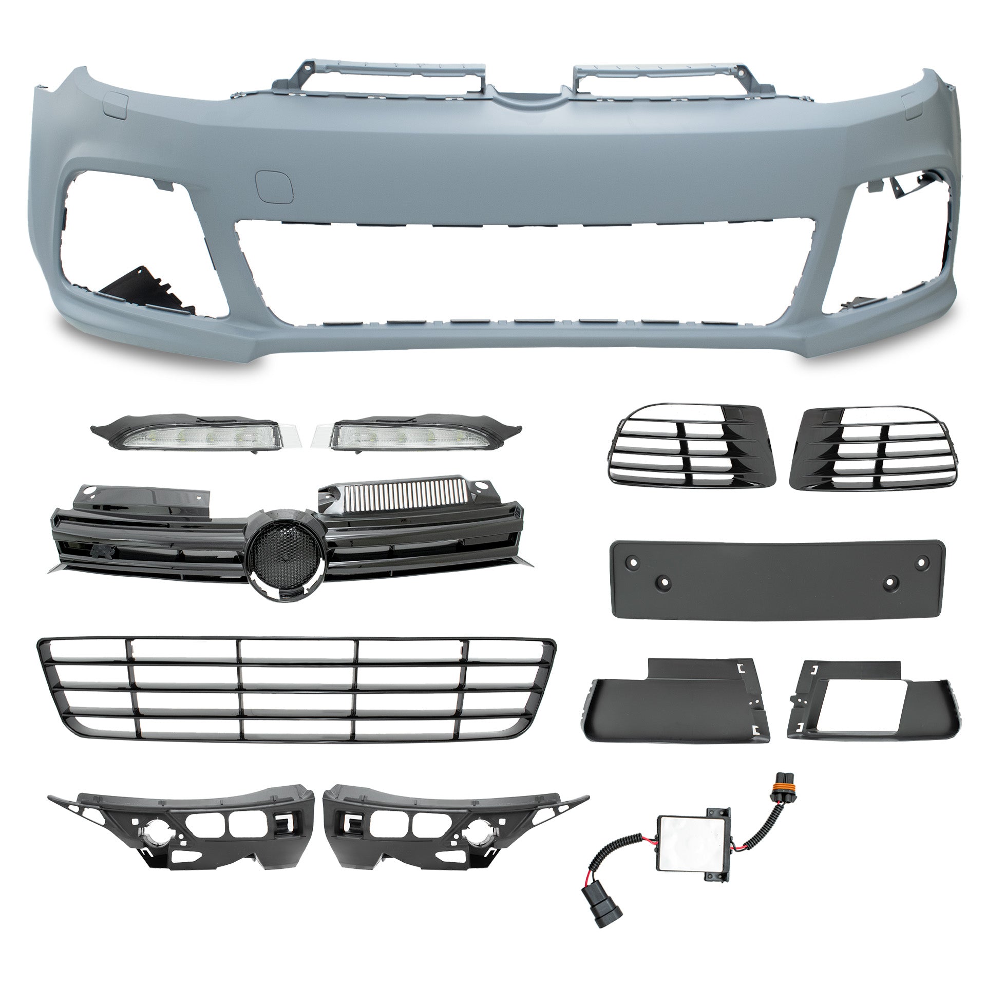 Defensa Golf Rline 09-13 Incluye: 2 Led luz de dia, 2 rejillas, 1 rejilla central, 1 parrilla superior, 1 spoiler inferior, 1 portaplaca